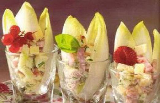 Lofbloem Gevuld met Kaas Even een andere presentatie... Amuse... Leuk op een koud buffet of met andere kleine lepelhapjes Maar je kunt ook de lof in ringetjes snijden En dan door de overige ingredienten voor een schaal lofsalade Ingrediënten 10 personen 2 struikjes lof 200 gram belegen kaas in [...]