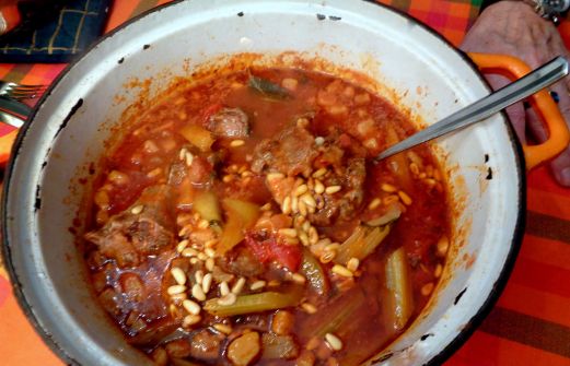 Ingrediënten: 1 kg ossenstaart, in stukken olijfolie 1 wortel, fijngehakt 8 stengels bleekselderij, waarvan 1 stengel fijngehakt 1 middelgrote ui, fijngehakt 100 g pancetta of vet spek, fijngesneden 2 teentjes knoflook, fijngehakt ½ bosje bladpeterselie, fijngehakt 3 takjes tijm 3 laurierb [...]