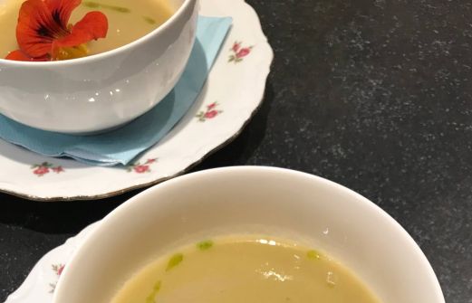 Een gezellige avond met drie buurtjes. Het menu was: Vichyssoise en Haverbrood Pasteitje met ‘Kip’ragout en Veldsla met Vlierbes-balsamicodressing Krokant gebakken Aubergine Parelcouscous in bietensap Tarte tatin gekaramelliseerde rode ui gemarineerde Zilveruitjes Pomme -aan lager w [...]