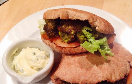 I was loving the pita chicken kebab from 2 weeks ago! So I wanted to make another pita dish but this time a vegetarian one. So I tried to make falafel but not with chickpeas as with the spicy falafel wraps , but with peas and bulgur. And it turned out pretty good!