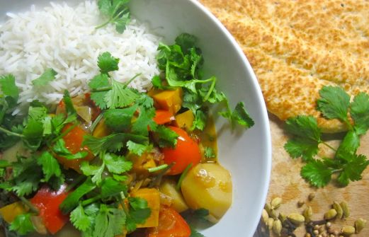 Het fijne aan recepten geïnspireerd op de Indiaase keuken is dat het een flinke aanslag vormt op de enorme hoeveel kruiden en specerijen die je in de loop van een vegetarisch kookleven verzameld. Tja, ik ben zo'n gek die voor een theelepel " vul willekeurig kruid in " weer een bakje of potje in [...]
