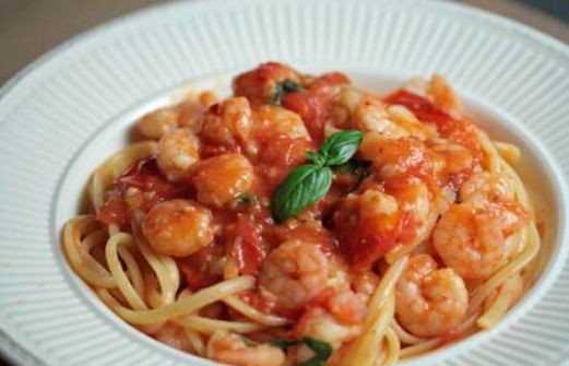voor 4 personen - (volkoren)spaghetti voor 4 personen (ca. 100 gr. pp) - 24 grote gepelde garnalen (ca. 6 per persoon) - 2 grote geperste tenen knoflook - 1 spaanse peper (ontdaan van zaadlijsten) in ringetjes gesneden - 6 bosuitjes fijn gesneden - scheut witte wijn - scheutje citroens [...]