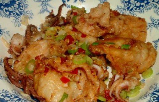 voor 4 personen 2 kleine pijlinktvissen (650 gr niet schoongemaakt of 300 gr schoongemaakt) 1 eetl. shaoxingwijn (rijstwijn of droge sherry) 3 e aardappelzetmeel 400 ml bakolie 2 eetl. fijngehakte knoflook 2 eetl. in dunne ringen gesneden wit van een lente-ui 1-2 eetl. in dunne ringen [...]