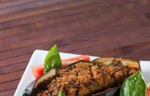 voor 2 personen 1 aubergine gehalveerd 100 g oude Goudse kaas in kleine blokjes 1 ui gesnipperd 1 eetlepel tomatenpuree of hot ketchup 1 eetlepel gehakte peterselie 3 eetlepels paneermeel 1 ei peper en zout 200 g mager gehakt 6 ontpitte groene olijven in plakjes 1 kleine tomaat in [...]