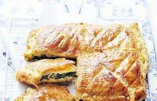 voor 4 personen 8 plakjes roomboterbladerdeeg (diepvries), ontdooid 25 g boter 2 uien, in dunne ringen 8 plakken Hollandse geitenkaas jong belegen (200 g) 1 citroen, schoongeboend 1 pak bladspinazie (450 g, diepvries), ontdooid 1 ei, gesplitst Hulpmiddelen Bakpapier Voorb [...]