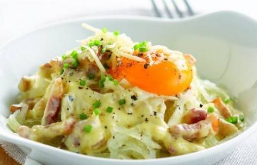 voor 4 personen 800 g vastkokende aardappelen (ongeveer 8 grote aardappelen) 150 g gerookt spek 50 g gemalen kaas 4 eigelen 2 dl room 2 dl melk Enkele el olijfolie 1 teentje knoflook Enkele stengels bieslook Peper van de molen Peper en zout Bereidingswijze Snijd het spek [...]