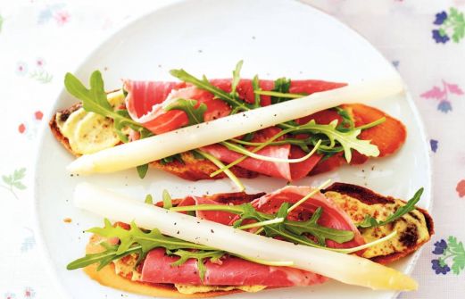 Ingrediënten 500 g witte asperges 1 stokbrood 3 eetlepels yogonaise 1 eetlepel Zaanse mosterd ½ zak rucolasla (a 75 g) 100 g pekelvlees (in plakjes) zet alles op mijn lijst Handig als boodschappenlijstje of om online te bestellen Bereiden [...]