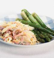 Ingrediënten 1 zak verse mosterdsoep (900 ml) 100 g groene aspergetips 100 g achterham (in reepjes) ½ bekertje zure room (a 125 ml) 1 bakje tuinkers zet alles op mijn lijst Handig als boodschappenlijstje of om online te bestellen Bereiden pr [...]
