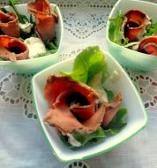 Ingrediënten 2 zakjes rucolasla (a 30 g) 3 bosuitjes 2 geroosterde paprika's (pot a 465 g) 2 eetlepels olijfolie zout en (versgemalen) peper 6 eieren (M) 1 dl slagroom 100 g geraspte belegen kaas (zakje a 150 g) nootmuskaat 20 g roomboter [...]