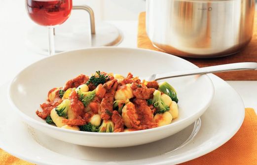 Ingrediënten 1 broccoli 1 varkensschnitzel 4 plakjes ontbijtspek 2 eetlepels boter 4 eetlepels rode wijn 1 pakje sugo traditionele (pastasaus, 470 g) 1 theelepel gedroogde salie 1 pak gnocchi di patate (aardappel-pastaballetjes, 500 g) zet a [...]