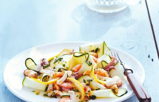 Ingrediënten 1 courgette 1/2 bakje platte peterselie (a 20 g) 1 citroen (schoongeboend) 1 teen knoflook (geperst) 4 el olijfolie extra vierge 2 bakjes fruits de mer (vis, a 150 g, koelvers) zet alles op mijn lijst Handig als boodschappenlijstje of o [...]