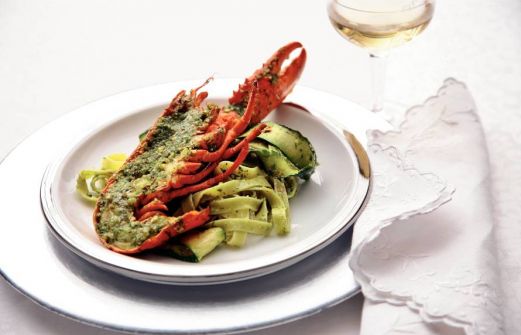 Ingrediënten 6 el olijfolie extra vierge 1 bakje basilicum ((15 g), blad fijngesneden) 2 tenen knoflook (geperst) 2 courgettes (in de lengte in dunne plakken) 4 el hazelnoten ((bakje 95 g), geroosterd) 75 g boter (gesmolten) 2 kreeften* ((diepvries), ontdo [...]