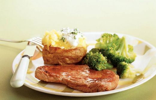 Ingrediënten 4 grote kruimige aardappels (à ca. 200 g) 800 g broccoli 4 eetlepels boter of margarine 4 kalfsschnitzels (à ca. 125 g) zout en peper 1 bekertje crème fraîche (125 ml) 1 zakje verse peterselie (30 g) 1 teentje knoflook zet a [...]