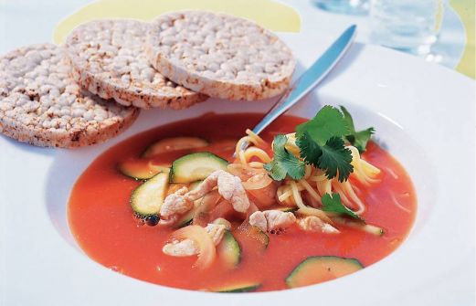 Ingrediënten 2 eetlepels zonnebloemolie 3 sjalotten (in ringen) 1 courgette (in halve plakjes) 1 fles wortelsap (750 ml) 250 g kipfilet (in reepjes) 125 g Chinese eiermie 15 g verse koriander (fijngeknipt) 8 rijstwafels zet alles op mijn lij [...]