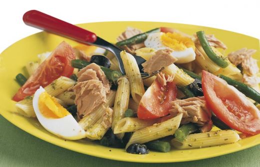 Ingrediënten 400 g sperziebonen 400 g penne 2 eieren 4 tomaten 370 g tonijn in olie (blik à185 g) 6 el pesto alla Genovese 12 zwarte olijven in plakjes zet alles op mijn lijst Handig als boodschappenlijstje of om online te bestellen Berei [...]