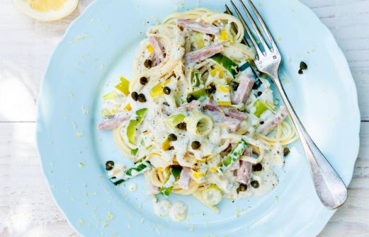 Ingrediënten 300 g linguine 1 ui 1 teen knoflook 3 el olijfolie 600 g gesneden prei 1 el grove mosterd 200 g zuivelspread bieslook light 200 g beenhamreepjes 1 citroen 50 g kappertjes zet alles op mijn lijst Handig als boodschapp [...]