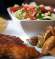 Ingrediënten 4 kalkoenschnitzels (AH puur&eerlijk scharrelvlees) 8 blaadjes salie 4 plakken parmaham 4 el olie 600 g aardappelpartjes met schil (koelvers) 2 tl gedroogde rozemarijn 600 g spinazie (gewassen) 40 g Grana Padano pittig kaasschaafsel (bakj [...]