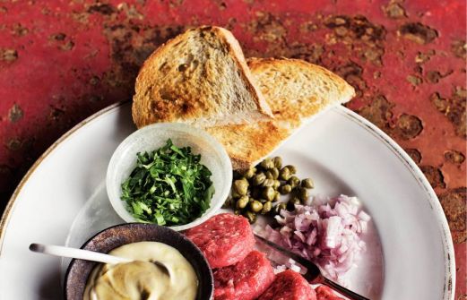 Ingrediënten 1 ossenworst (210 g) 1/2 zakje peterselie ((a 30 g), fijngesneden) 2 sjalotten (zeer fijngesnipperd) 4 kleine zoetzure augurken ((potje 340 g), in kleine blokjes) 4 tl kappertjes (potje 100 g) 3 el mayonaise 1 el scherpe mosterd (potje 215 g) [...]