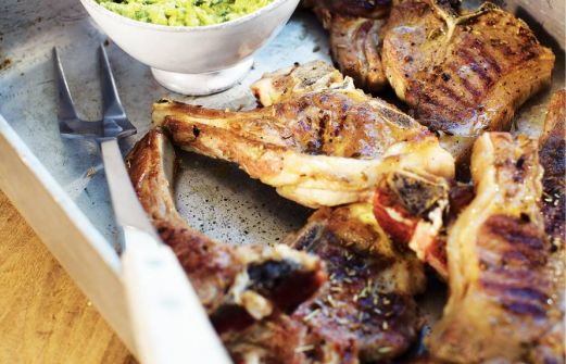 Ingrediënten 3 tenen knoflook 100 ml olijfolie 1 tl komijnzaad 1 tl gedroogde rozemarijn 2 schaaltjes lamskoteletten (a 4 stuks) ½ pak tuinerwten (extra fijn (a 450 g), diepvries)) 1 bakje munt ((15 g), alleen de blaadjes) 1 el rodewijnazijn [...]