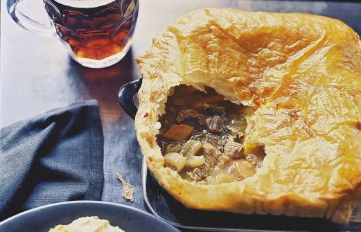 Ingrediënten 2 tenen knoflook 2 rode uien 1 struik bleekselderij 400 g winterpeen 2 tl zout 700 g magere runderbraadlappen 3 el olijfolie 2 el bloem 2 takjes rozemarijn 600 ml bruin bier (flesje 300 ml) 150 g Cheddar Tophat 48+ 1 r [...]