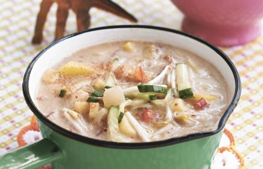 Ingrediënten 1 ui 2 aardappelen 1 tomaat ¼ komkommer ½ el olijfolie 2 kippenbouillonblokjes 150 g pindakaas (naturel) ½ tl cayennepeper 1 bakje taugé 1 liter water zout zet alles op mijn lijst Handig als bood [...]