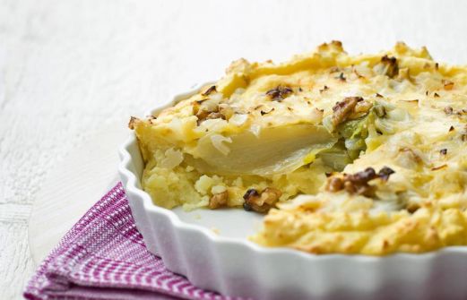 Ingrediënten 2 uien 600 g witlof 1 el boter 300 g jong belegen kaas 50 g walnoten (bakje 110 g) 1 ei 750 g aardappelpuree (koelvers) zet alles op mijn lijst Handig als boodschappenlijstje of om online te bestellen Keukenspullen quiche- of o [...]