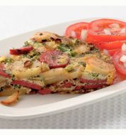Ingrediënten 1 blikje cornedbeef (340 g) 5 eieren (M) 50 ml melk 1 zakje kruidenmix voor Spaanse aardappelomelet (20 g) 4 eetlepels olijfolie 1 pak minikrieltjes (450 g) 4 trostomaten 5 eetlepels sladressing yoghurt (fles à 450 ml) zet alle [...]