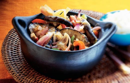 Ingrediënten 1 stengel sereh (citroengras) 1 pak tofu (Biologisch) (netto 325 g) 1 rode paprika 1 groene paprika 2 rode uien 2 aubergines 2 eetlepels olie 3 eetlepels Thaise basilicumpasta (pot ` 225 g) ½ blik kokosmelk (` 400 ml) ½ [...]