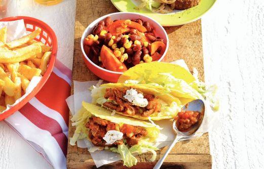 Ingrediënten 1 blik chilibonen (400 g) 1 blikje maiskorrels ((3 x 198 g), uitgelekt) 3 trostomaten (in parten) 1 pak tacoschelpen 2 el zonnebloemolie 1 schaal runderreepjes (350 g) 1 potje salsasaus mild (300 g) 1 zak ijsbergsla (200 g) zet [...]