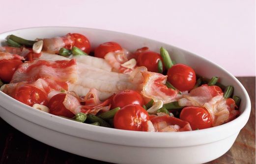 Ingrediënten 600 g sperziebonen 2 tenen knoflook 4 el olijfolie 500 g kabeljauwfilet 250 g cherrytomaten (bakje) 120 g gerookt ontbijtspek (pakje) 250 g tarly (pak) zet alles op mijn lijst Handig als boodschappenlijstje of om online te bestelle [...]