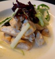 Ingrediënten ½ rode peper 9 teentjes knoflook 1 dl droge witte wijn 1 dl olijfolie 2 laurierblaadjes 1½ theelepel verse tijm (blaadjes) ½ theelepel komijn (djinten) zout en peper 350 g kipfilet 1 takje verse peterselie 75 [...]