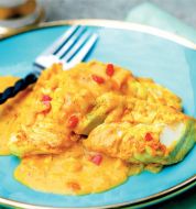 Ingrediënten 1 stengel sereh (citroengras) 4 cm verse gember 2 rode pepers 2 uien 1 blik tomatenblokjes (400 g) 500 g verse kabeljauwfilet 4 takjes koriander 2 eetlepels olie 2 theelepels gemalen kurkuma (koenjit) 1 blik kokosmelk (400 ml) [...]