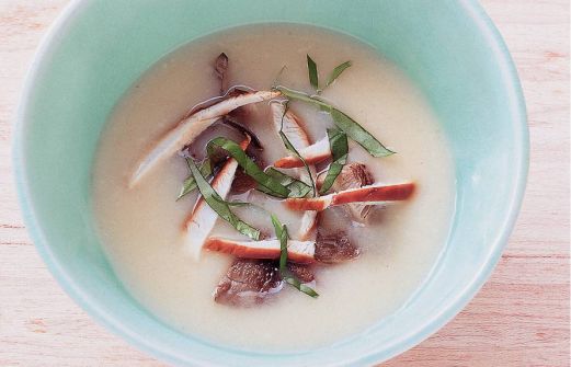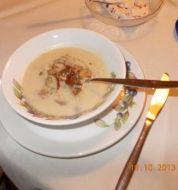 Ingrediënten 50 g boter 25 g bloem 1 liter kippenbouillon (zelfgetrokken) 150 g oesterzwammen witte peper 100 g gerookte kipfilet 1 ei (gesplitst (eiwit wordt niet gebruikt)) 1 dl koksroom (pakje a 2 dl) nootmuskaat citroensap ½ za [...]