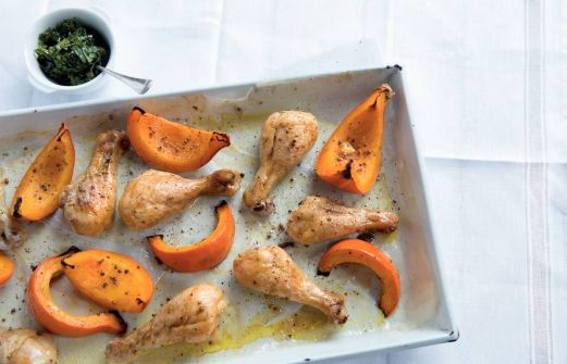 Ingrediënten 1 kleine oranje pompoen (schoongeboend) 8 drumsticks 1 el korianderzaadjes (fijngestampt) 5 el olijfolie 75 g rucola (fijngehakt) 1 el balsamicoazijn zet alles op mijn lijst Handig als boodschappenlijstje of om online te bestellen B [...]