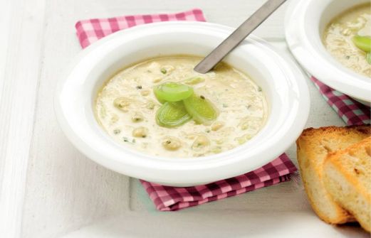 Ingrediënten 2 x 375 g prei (in ringen) 5 el olijfolie 2 tenen knoflook (geperst) 2 grote aardappelen ((zak 3 kg), in blokjes) 1 pot kippenbouillon (350 ml) 1 ciabatta (voorgebakken (brood, 250 g)) 1 bakje roomkaas bieslook 24+ (125 g) zet alles [...]