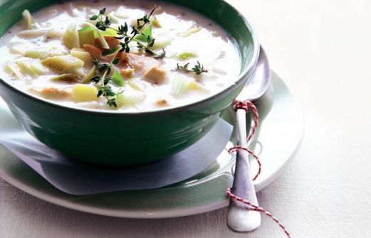 Ingrediënten 30 g boter 300 g kipfilet ((scharrel), in stukjes) 1 ui (gesnipperd) 1 kg aardappelen (vastkokend, geschild en in blokjes) 2 kippenbouillontabletten 2 prei 2 el gedroogde tijm 2 el grove mosterd 1/2 beker slagroom (a 500 ml) [...]