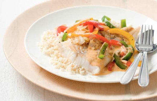 Ingrediënten 300 g witte rijst (zak 1 kg) 2 el olijfolie 1 ui (fijngesnipperd) 1 zak paprikamix ((3 stuks, groen en rood en geel), in reepjes) 1 blikje tomatenpuree (70 g) 2 tl milde paprikapoeder 1 flesje kookroom (250 ml) 500 g kabeljauwfilet (zak 7 [...]