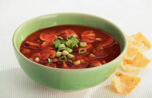 Ingrediënten 3 bosuitjes 1 bakje kastanjechampignons (250 g) 2 eetlepels zonnebloemolie 1 schaaltje Tivall roerbakstukjes (175 g) 1 pak soepbasis tomaat (1 liter) mespunt gemberpoeder 2 eetlepels zoete ketjap 2 zakjes cassave kroepoek (a 60 g) [...]
