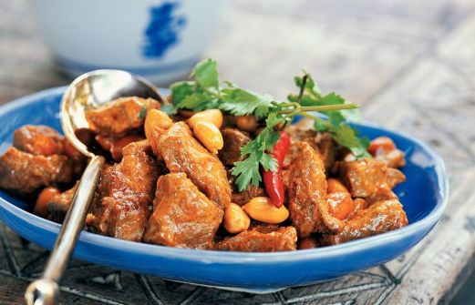 Ingrediënten 500 g magere runderlapjes 8 dl kokosmelk 2 laurierblaadjes 1 kaneelstokje 1 portie Matsaman-currypasta (recept op ah.nl/recepten) 50 g pinda's (ongezouten) 2 el donkerbruine basterdsuiker 4 el limoensap 3 el vissaus 2 takjes kor [...]