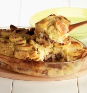 Ingrediënten Porties : 2 pakje zuurkool (kleinste pakje voor 2 personen) 1 ons paprika salami (of chorizo) 2 uien 200 gram gehakt paprikapoeder peper, zout aardappelpuree 1/2 ons ontbijtspek paneermeel stukjes boter Bereidingswijze Voorbereiding: [...]