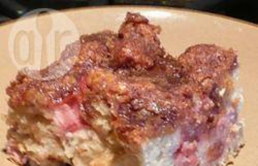 Ingrediënten Porties : 12 250 gr rabarber, fijngesneden 100g suiker 275g bloem 1 theelepel baksoda 1/2 theelepel zout 1 theelepel kaneelpoeder 1/2 theelepel gemalen nootmuskaat 125g boter 300 gr suiker 2 eieren 1 theelepel vanille-extract 250ml karne [...]