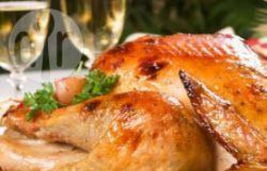Ingrediënten Porties : 24 1 grote hele kalkoen, nek en ingewanden verwijderd 500g grof zout 125g boter, gesmolten 2 grote uien, geschild en gehakt 4 wortels, geschild en gehakt 4 stengels bleekselderij, in stukjes 2 takjes verse tijm 1 laurierblad 250ml dro [...]
