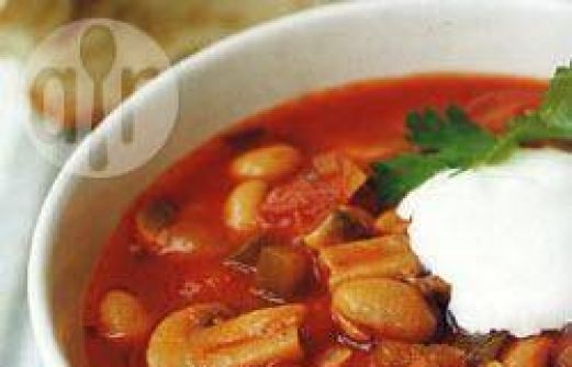 Ingrediënten Porties : 4 2 eetl. plantaardige olie 1 ui, versnipperd 2 tenen knoflook, geperst 1 rode paprika, zaad verwijderd en in stukjes 1 groene paprika, zaad verwijderd en in stukjes 125 g kleine champignons, in plakjes 1/2 theel. chilipoeder, of naar smaak [...]
