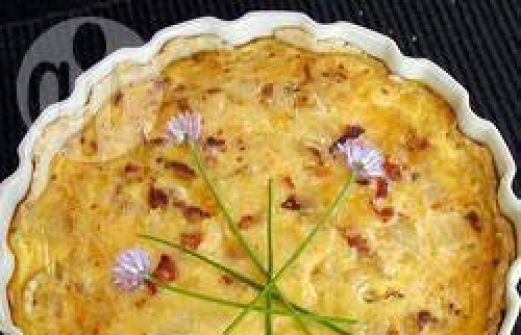 Ingrediënten Porties : 8 1 kant-en-klare taartbodem voor hartige taart (diameter 23 cm) 6 plakjes spek 1 ui, gesneden 3 eieren, losgeklopt 350 ml melk 1/4 tl zout 150g (5 oz) geraspte (jong) belegen kaas 1 el bloem Bereidingswijze Voorbereiding: 30 min & [...]