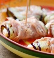 Ingrediënten Porties : 4 1 grote aubergine, circa 350 g, overlangs in 10 plakken gesneden van circa 3 mm dik 2 el olijfolie, extra vergine 1 ui, in dunne ringen gesneden 4 teentjes knoflook, fijngesneden ½ rode paprika, zonder zaden en in dunne reepjes gesneden ½ groe [...]