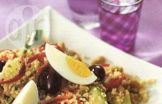 Ingrediënten Porties : 4 250 g couscous 400 ml kokend water 1 el olijfolie, extra vergine 1 tl gedroogde Provençaalse kruiden 150 g sperziebonen ½ komkommer 2 blikken flageolets, à circa 400 g, uitgelekt en afgespoeld 1 kleine rode ui, fijngesneden 200 g kers [...]