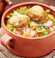 Ingrediënten Porties : 4 1 el olijfolie, extra vergine 1 ui, fijngesneden 1 klein worteltje, in dobbelsteentjes gesneden 2 teentjes knoflook, in schijfjes gesneden 1 prei, fijngesneden 1 stengel bleekselderij, in blokjes gesneden 2 el fijngehakte peterselie 1 aa [...]