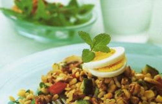 Ingrediënten Porties : 4 300 g voorgekookte tarwekorrels 1 laurierblaadje 2 maïskolven ½ el zonnebloemolie 75 g walnoten, gebroken 1 rode paprika, zaad verwijderd en in blokjes gesneden 125 g champignons, in plakjes gesneden ½ komkommer, in stukjes gesneden 1 [...]