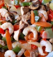 Ingrediënten Opbrengst : 30 3 el Japanse sojasaus 3 el sake of droge sherry 1 el sesamolie van geroosterd sesamzaad 1 teentje knoflook, uitgeperst 1 el fijngehakte verse gemberwortel 2 tl honing 500 g kipfilet, in blokjes van 2 cm gesneden 1 grote groene papri [...]