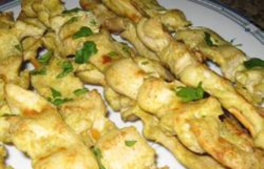 Ingrediënten Porties : 4 120 ml kokosmelk 1 1/2 theelepel gemalen koriander 1 theelepel kerriepoeder 1 theelepel vissaus 1/2 theelepel chili olie 450 gr kipfilet, in lange reepjes 1 eetlepel gehakte verse koriander 1 eetlepel gehakte ongezouten pinda's 12 s [...]